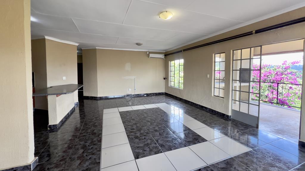 As you enter and go up the stairs you are greeted by an open-plan lounge area. The seamless flow into the kitchen creates a warm, inviting atmosphere, ideal for both family gatherings and entertaining guests. The lounge area opens up to the balcony with the most picturesque view of Nelspruit, with a built-in braai for comfort.