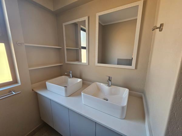 3 modern bedrooms and 2 bathrooms plus a guest bathroom.