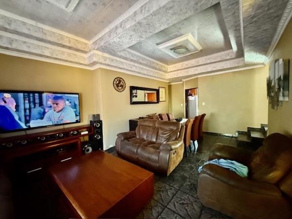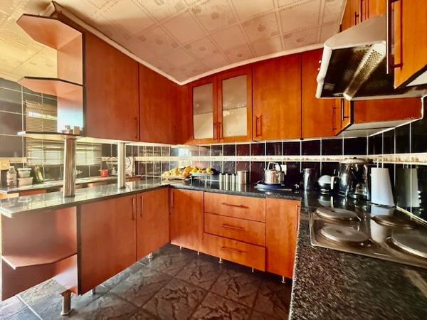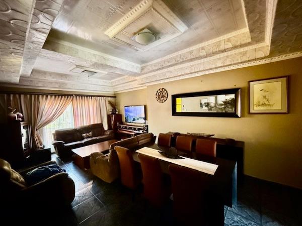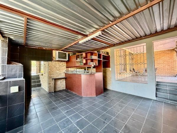 The heart of the home is the large kitchen, complete with a scullery and an outside laundry, making household chores a breeze. Step outside and be greeted by an established garden within a walled yard, providing privacy and a peaceful atmosphere. The entertainment area is covered and secured, perfect for hosting gatherings with its bar and Braai area. You''ll never have to worry about parking with space for all your toys to be accommodated in the double garage or double carports or the large paved driveway leading all the way to the back of the property.