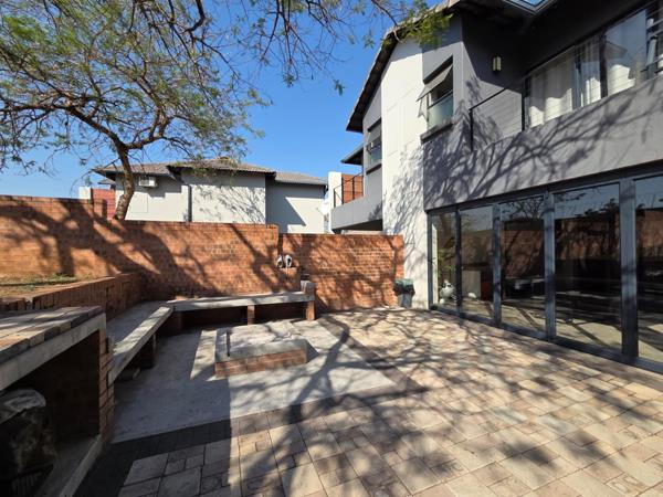 The outdoor space is both private and low-maintenance, featuring a fully walled garden perfect for children and pets. Entertain with ease in the dedicated entertainment area with built-in seating and a braai ideal for weekend gatherings. A discreet courtyard with a washing line caters to daily household needs.