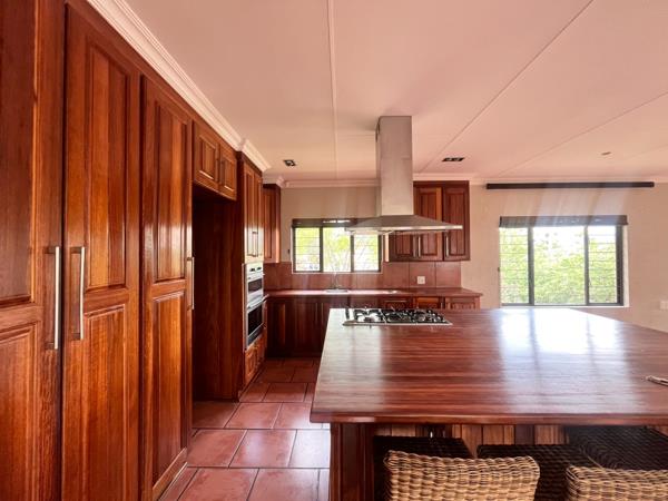 Kitchen: Stunning wooden centre-island, open plan to living area, gas top stove, hob and scullery