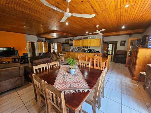 The open-plan living and dining spaces flow effortlessly to an entertainers dream. Step outside to a large stoep with a built-in bar, braai area, and offers views of the garden and poolan ideal space for family gatherings or relaxing weekends. The spacious yard is perfect for pets and children to play.