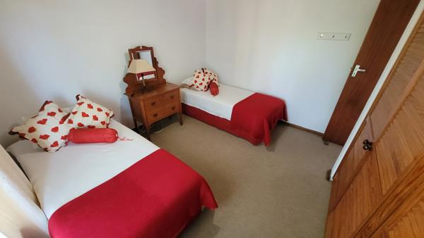 This charming double volume house boasts solid construction and features 3 bedrooms, 2.5 bathrooms, and three spacious living areas. It includes a wine cellar and an outdoor verandah perfect for relaxation, complete with a swimming pool and jacuzzi. The property also offers a double lock-up garage with ample storage space plus two under cover parking''s as well as two studies. Additionally, there is a large storeroom with an exterior room, toilet, and basin. To top it off, the estate is equipped with 5000 and 500-litre water tanks and is fully walled for your privacy and security.