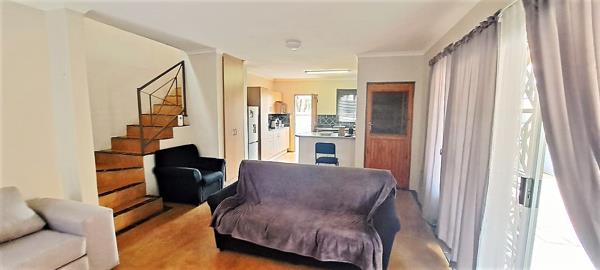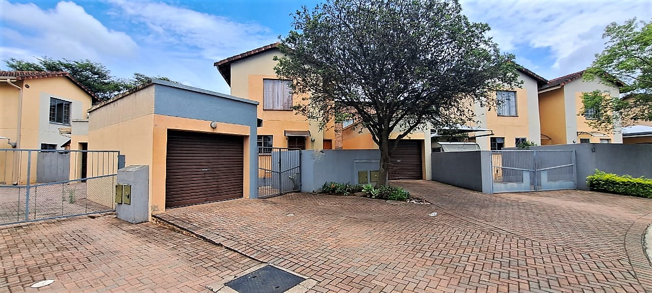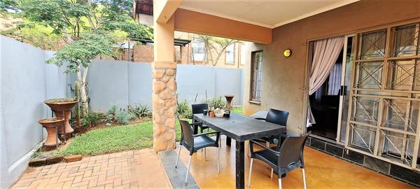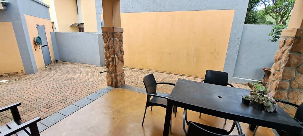 It has one lock up garage and one under cover parking. The ground floor consists of a shady patio and the garden to enjoy, the kitchen and living area. On the second floor you have two bedrooms and two bathrooms, one being ensuite. The complex has a green area, and 247 security. At the price, this is a must see!