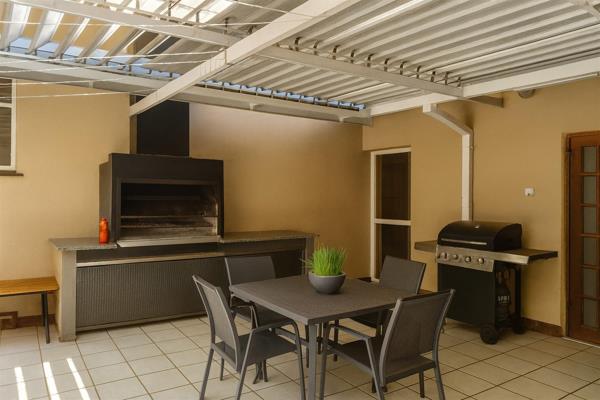Covered stoep with built-in braai and a stylish louvre roofperfect for year-round entertaining