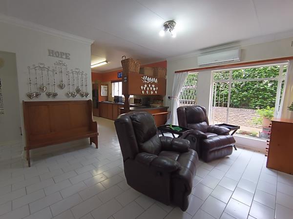 Nestled within the tranquil suburban enclave of West Acres Ext 7, Nelspruit, this distinguished residence presents an impressive faade, hinting at the refined living within. A private, paved driveway leads to an integrated double garage, offering ample secure parking. The property is enveloped by mature trees and lush greenery, creating a secluded oasis on a generous 1123 sqm erf, fully walled for ultimate privacy. A private patio invites al fresco entertaining, overlooking a magnificent, lush garden and a sparkling swimming pool, promising endless leisure and relaxation. This outdoor haven, where pets are allowed, is perfect for families seeking a harmonious blend of indoor comfort and natural beauty.