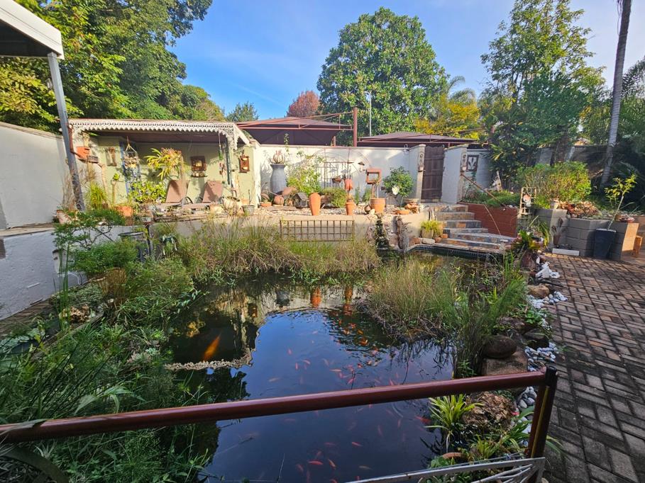 Large Swimming Pool thats been converted to a koi pond and can easily be converted back, with Patio and Amazing Bar(Fitted and staying) a Land Rover Long wheel base which the House Pivots around... pizza ovens,. Inside braais. So much on offer.