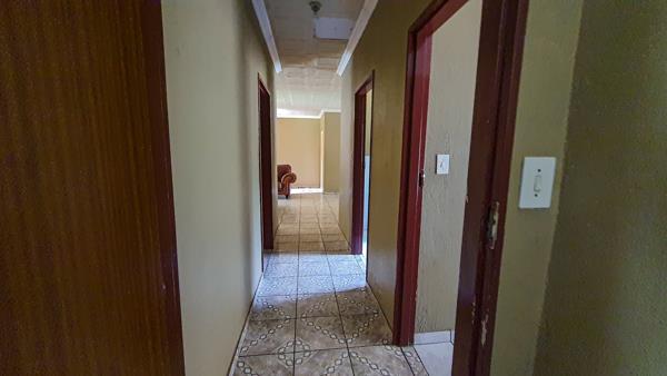 The kitchen offers ample cupboard space and a functional layout, with room to add your own modern touches. The home also features a single garage with direct access to the house, built-in cupboards in the bedrooms, and a secure gated entrance.