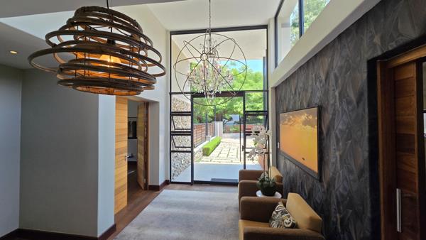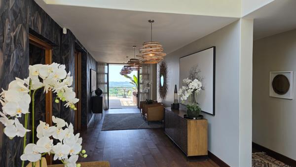 An incredible four-bedroom home that has recently been built. It has an impressive setting that overlooks the entire North Side of White River. There is not a square centimeter of this property that does not testify to the high quality of both the building and finishes. Every room has either a balcony or a covered patio. There is an abundance of natural light throughout and the designer chandeliers and bespoke light fittings are unique in the Lowveld.