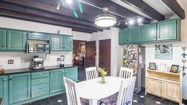 Stylish family kitchen with gas stove, walk-in pantry, and separate scullery