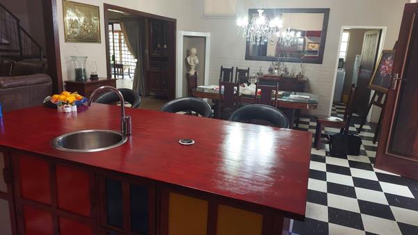 with lots of wooden features and tons of storage spaces throughout. There are three spacious bedrooms, each with a modern en-suite bathroom and walk-in closets. The master bedroom has sliding doors opening on to the enclosed patioentertainments area which plays host to a hot tub, pool table and built-in braai. The other two bedrooms are on the opposite end of the house, leading off the informal TV lounge.