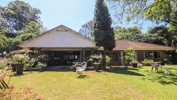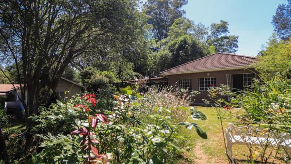 A carport can accommodate six vehicles. The gardens are filled with various bird species and feature a rare, colorful landscape. Small duikers can often be seen wandering about. The outdoor space allows for stunning views, particularly when seated under the shade of large, mature trees. Please note there is no pool or solar power installed. This beautiful garden is a haven for diverse birdlife.