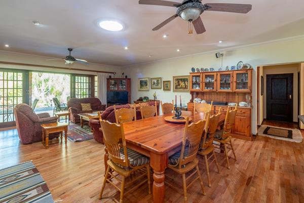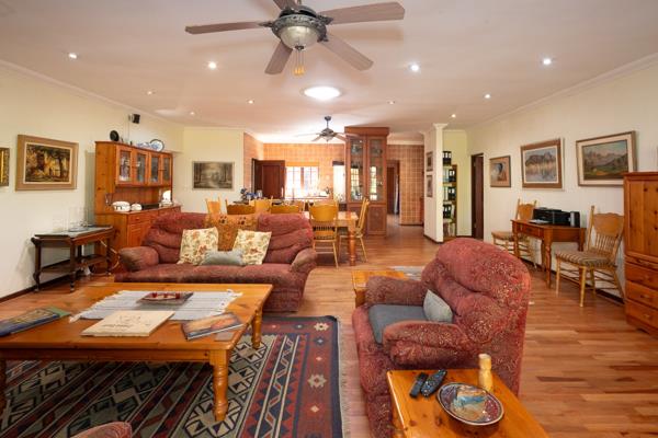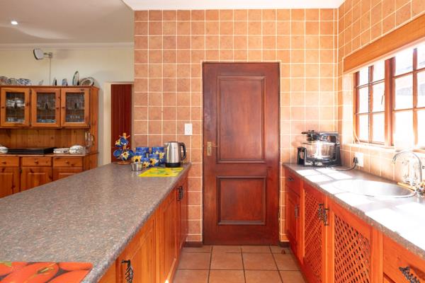 The open-plan lounge and dining area flow seamlessly onto a large patio, complete with braai facilities and a sparkling pool, perfect for entertaining. The kitchen features an open-plan design and is equipped with a double oven, a spacious pantry, and an extra-large scullery/laundry area, perfect for both everyday living and effortless entertaining.