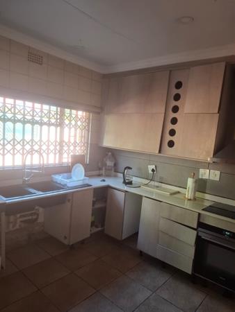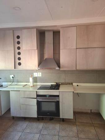 The home features three spacious bedrooms, all with built-in cupboards. The main bedroom includes an en-suite bathroom, providing added privacy and convenience. The modern open-plan kitchen is designed with ample cupboard space and flows seamlessly into the bright and airy living and dining area, creating an inviting space for both everyday living and entertaining.