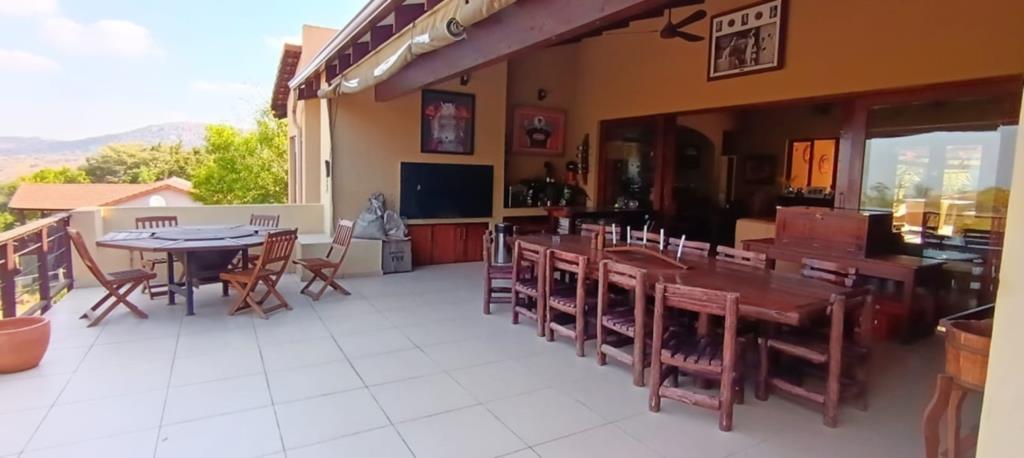 The property features a splash pool on one patio, and on the other side, there is a covered area with a built-in braai (barbecue) and spacious patio that offers stunning views, something you dont see every day.