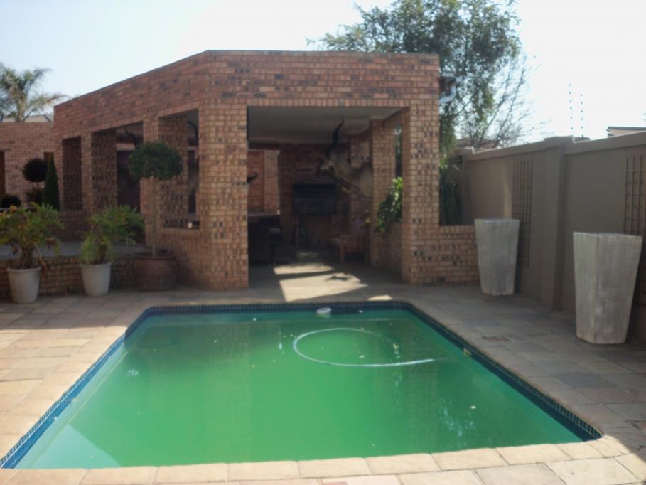 This property abounds on ground level. Double volume entrance hall. Guest toilet. Spacious living area and dining room area with fireplace. An indoor, heated pool to enjoy and watch your favorite game on the projector screen. The gourmet kitchen is fitted with ample cupboards, a center island, walk in pantry and a separate scullery. (Laundry in Wendy house). Access from the dining room to the covered patio with built in braai, overlooking the sparkling outside pool and entertainment area with another built in braai. The impressive staircase with glass window feature leads to the second level that abounds of the four bedrooms with aircon. The two bathrooms are both full sets. The main bedroom has a walk in dressing room.