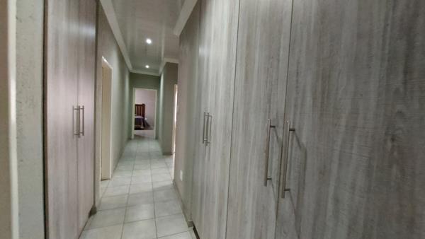This property offers an unparalleled lifestyle in an upmarket suburb. Upon entering, you are welcomed by a spacious open floor plan that effortlessly blends the living area, dining room, and kitchen with a separate scullery. The four bedrooms with built-in cupboards are spacious, with two having en-suite bathrooms.
