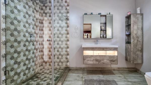 On the main level, the open-plan living area wraps around the heart of the homecomplete with a cozy fireplace and a jacuzzi positioned to soak up the light and garden views. The kitchen delivers both function and flair with its sleek granite countertops, eye-level oven, extractor fan, hob, and a spacious scullery equipped to handle the demands of entertaining at scale.