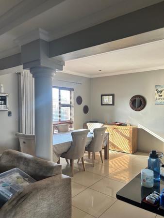 The open-plan design enhances the flow between the lounge, dining area, and kitchen, creating an inviting space for both everyday living and entertaining. The modern kitchen is equipped with enough cardboard for Storage. A breakfast nook, add to the kitchens appeal, with space for a double-door fridge and one additional appliance.