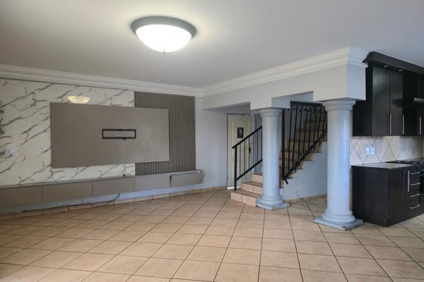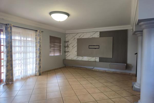 Step through the secure entrance and into a warm, open-plan living space where the lounge, complete with a sleek built-in TV unit and feature lighting, flows effortlessly into the dining area. Large sliding doors invite you out to a covered patio, ideal for weekend braais, morning coffees, or quiet evenings under the stars. The layout is designed for both easy entertaining and relaxed everyday living.