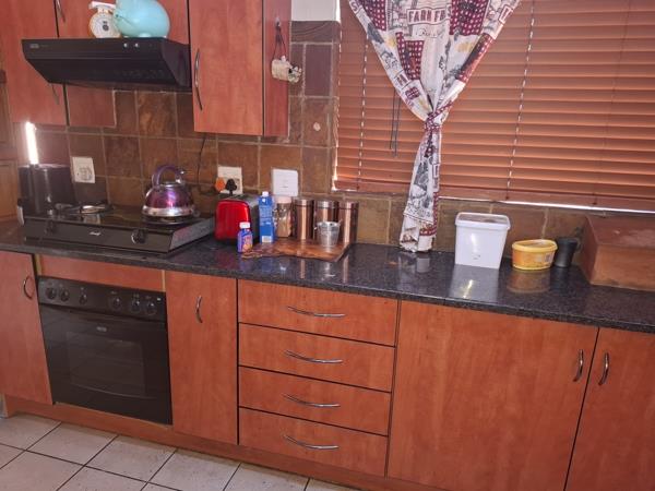 This property offers an entrance hall, lounge and dining area that forms an open plan to the kitchen with granite counter tops, a walk in pantry and a separate laundry/scullery. The main bedroom is found on ground level and boast a walk-in dressing room and an en-suite bathroom (full set). The staircase leads to two bedrooms sharing the family bathroom.