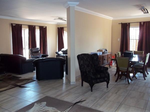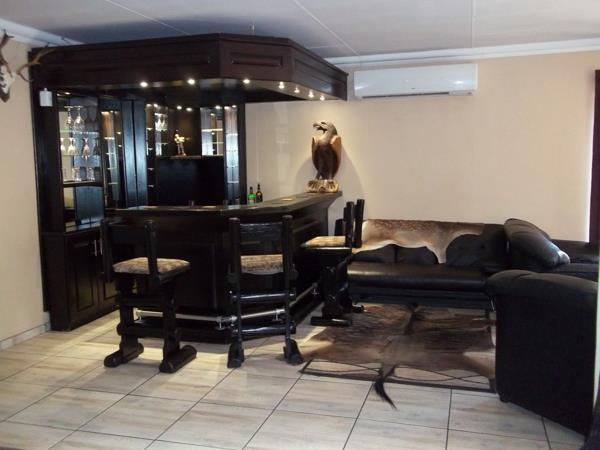 This house abounds of a family lounge, dining room and bar area that forms an open plan with the gourmet kitchen with center island, gas stove and separate laundry/scullery. A second laundry is conveniently outside. The living areas and dining room have doors leading to the swimming pool, lapa and outside braai area.