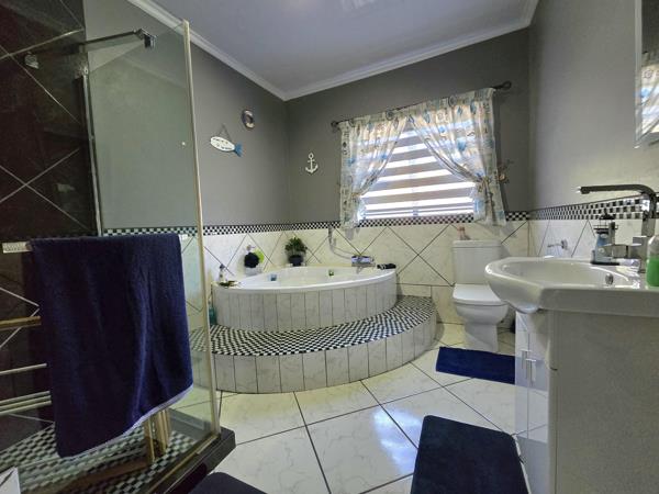 The outdoors is designed for relaxation and gatherings alike. Enjoy a covered patio with built-in braai, a cosy boma, and a sparkling pool alongside a koi pond and landscaped garden. Extra features include a full solar and inverter system, JoJo water tank, gas geyser, and top-class security with cameras, beams, electric fencing, and automated garages with drive-through access. This is a home where modern efficiency, safety, and comfort come together seamlessly.
