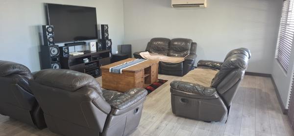 Situated in a secure, well-maintianed complex with remote-controlled access, high perimeter walls and electric fencing. Inside, you''ll find three sunny bedrooms, each with built-in cupboards and sliding doors opening onto the covered patio. The main bedroom is fitted with an air conditioner and boasts a fulle ensuite bathroom, while the other two bedrooms are served by a second full bathroom.