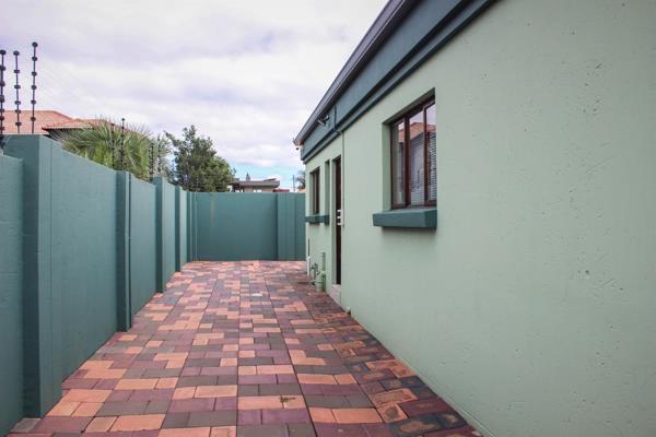 The dining area opens onto a covered patio, complete with a built-in braai, providing the ideal setting for entertaining guests or enjoying a quiet evening outdoors. The adjoining garden area offers a tranquil retreat, perfect for relaxation.