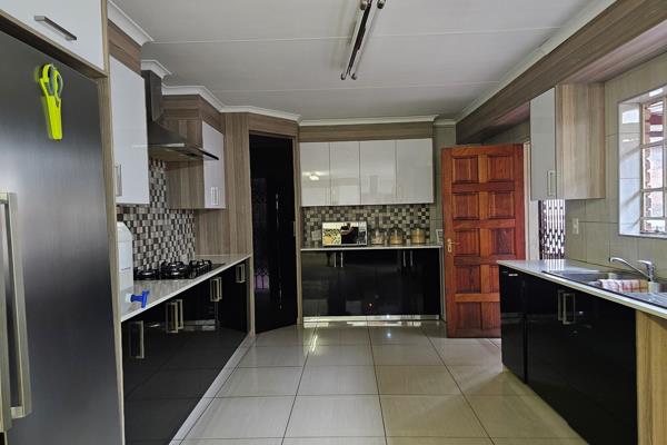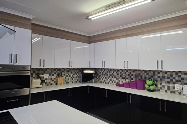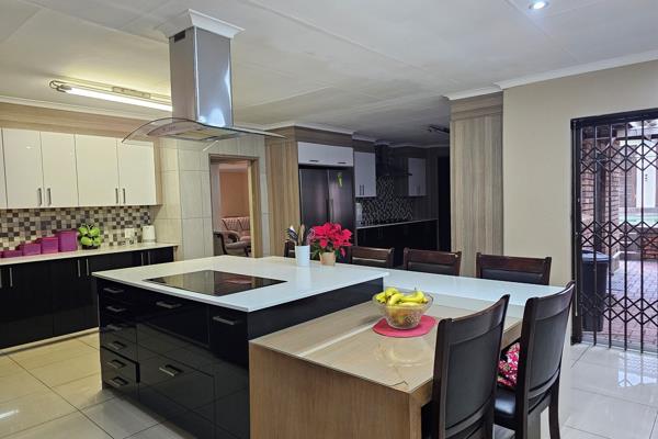 The five bedrooms, three featuring en-suite bathrooms, offer both comfort and privacy. The versatile fifth bedroom doubles as a study, catering to various lifestyle needs. The passage hosts a convenient linen cupboard, and the entertainment area is a focal point with a spacious built-in bar and a jacuzzi. Opening to a private heated pool, outdoor braai area, and shower, this space is an oasis for leisure. Additional amenities include a flatlet for visiting guests, a double garage, a carport for six vehicles, and a well-maintained garden with a Wendy house for garden equipment. Move-in ready, this residence invites you to embark on a new chapter of life in unparalleled style and comfort.