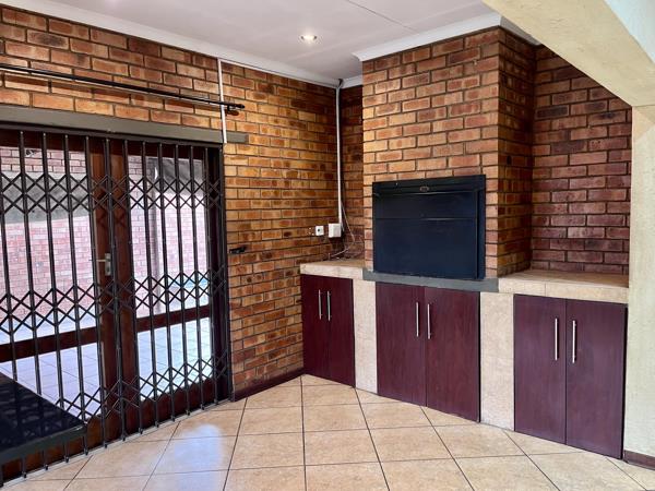and a separate scullery. The stylish braai room, complete with a built-in braai and serving