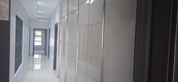 The home features four spacious bedrooms, each with built-in cupboards and en-suite bathrooms. The main and second bedrooms include full bathrooms, while the third and fourth bedrooms offer en-suite bathrooms with a shower, toilet and basin. The main bedroom also enjoys direct access to the patio with built-in braai.
