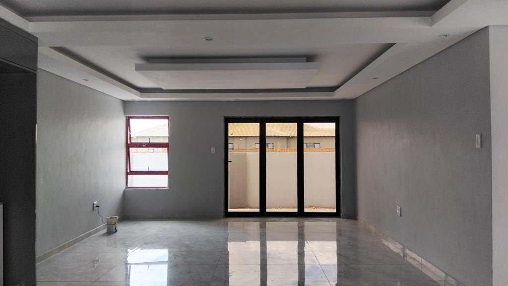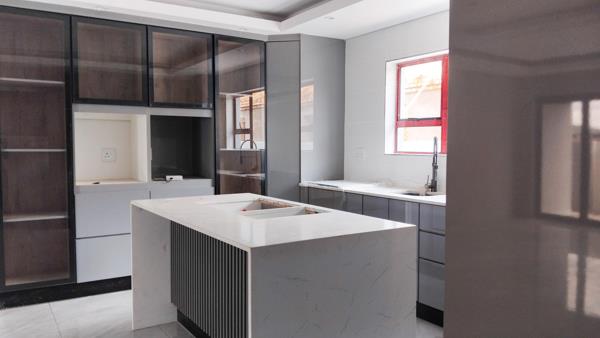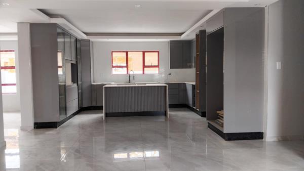 Inside, the open-plan layout flows effortlessly from the designer kitchen to the dining and lounge areas, leading out to a built-in braai space ideal for family gatherings and weekend relaxation.