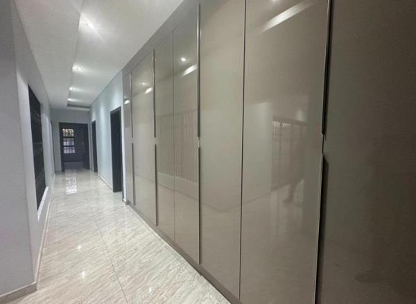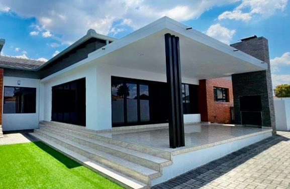 Discover an exquisite residential offering in the esteemed suburban enclave of Aerorand, Middelburg. This meticulously designed home presents a contemporary architectural aesthetic, featuring a striking facade and a grand paved entrance. Inside, five opulent bedrooms and five lavish bathrooms provide unparalleled comfort, complemented by extensive built-in storage and sleek tiled flooring.