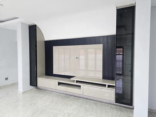 Energy efficiency and security have been prioritized, with an 8kVA inverter system and five solar panels already installed, ensuring convenience and peace of mind. Security features include an alarm system, burglar bars, Trellidoors, and an electric fence, all combining to offer complete safety without compromising on style.