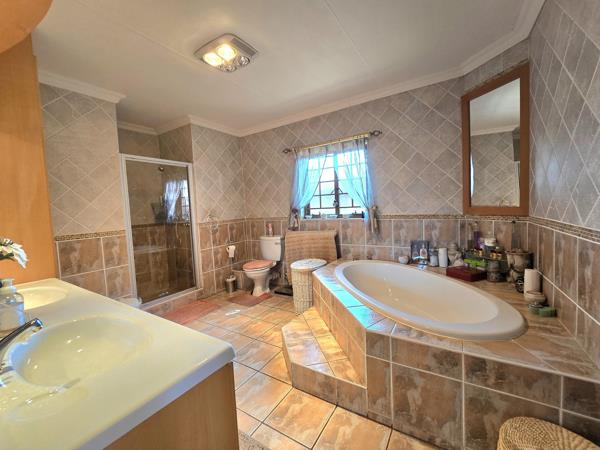 All three bedrooms are generously sized, with the main bedroom featuring air conditioning, a walk in closet, and a full en suite bathroom. The remaining bedrooms are well appointed and share a full bathroom, while a separate guest toilet adds extra convenience. The home also includes a private study for those who work from home, strong security features such as electric fencing, automated gates, burglar bars, trelligates, CCTV, and an outside toilet for added practicality. The low maintenance garden is neatly kept and fitted with irrigation.