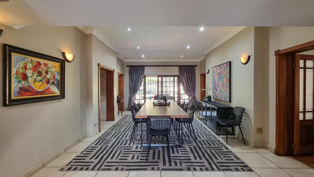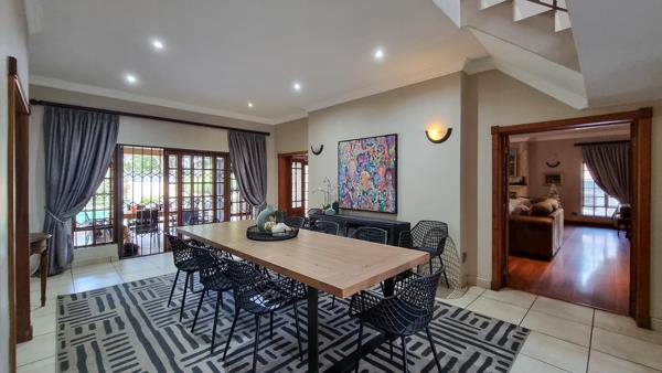 A grand double-volume foyer with a sweeping staircase sets the tone on entry, flowing into sunlit living areas designed for both relaxation and entertaining. The dining space connects seamlessly to a covered patio overlooking a sparkling pool and manicured gardenyour private retreat.