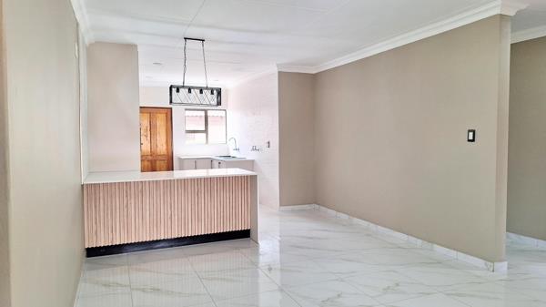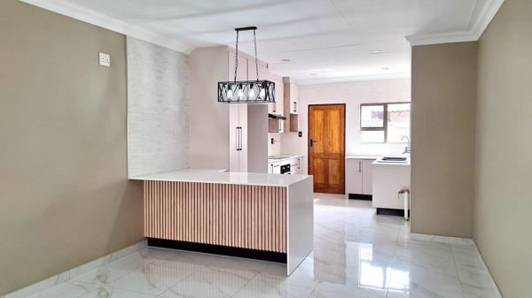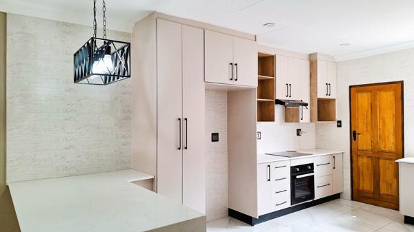 The lounge and dining area flow naturally toward the heart of the home, a beautifully redesigned kitchen. This modern culinary space features brand-new wall and floor tiles, generous cabinetry, and well-planned work surfaces that make meal prep effortless. The kitchens layout is ideal for both everyday cooking and hosting, allowing you to stay connected with family or guests in the nearby dining area. Its clean, contemporary finishes make it a space youll love spending time in, whether you''re starting the morning with a quiet cup of coffee or preparing a feast for friends.