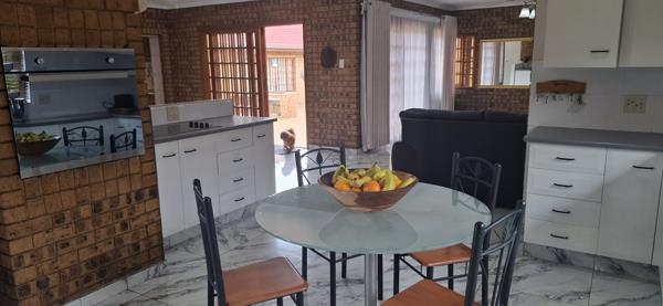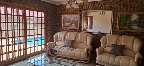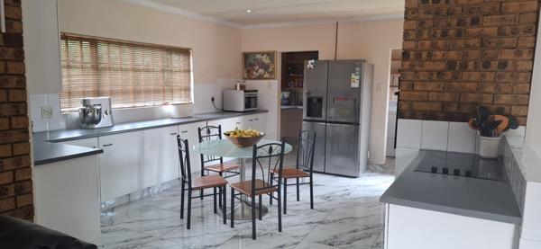 A private study with fitted shelves and desk is perfect for working from home and can easily be used as a fifth bedroom if needed. Down the passage follows four bedrooms and five bathrooms. The main bedroom is execeptionally spacious, offering ample cupboard space and a full en-suite bathroom. Bedrooms two and three each have en-suite basin and toilet facilities, while bedroom four is serviced by a full bathroom. An additional fifth full bathroom adds extra convenience. The bedroom wing also have sliding doors to the pool area, enhancing the home''s airy feel.