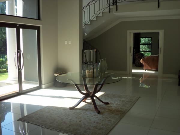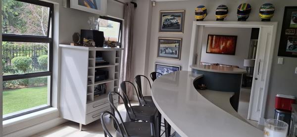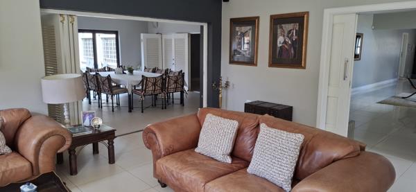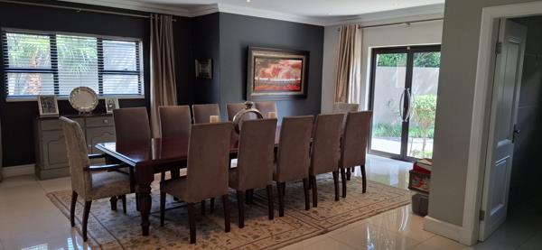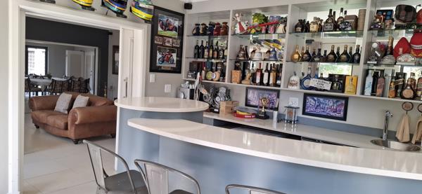 This mansion abounds of five bedrooms serviced by four bathrooms. The main is upstairs with its own pajama lounge and study or second bedroom. The living areas allows plenty of airy space and entertaining to 5-Star quality with the bar room and the entertainment area with built in braai overlooking the pool.