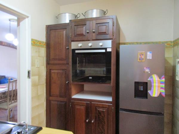 GROUND FLOOR: Open plan Lounge/Dining room with new carpets, Well planned Kitchen with eyelevel oven, stove and wooden cupboards with melamine finish, , Utility room and laundry, garage and carport with small well kept garden and clinker surrounding wall. Remote controlled entrance gate.