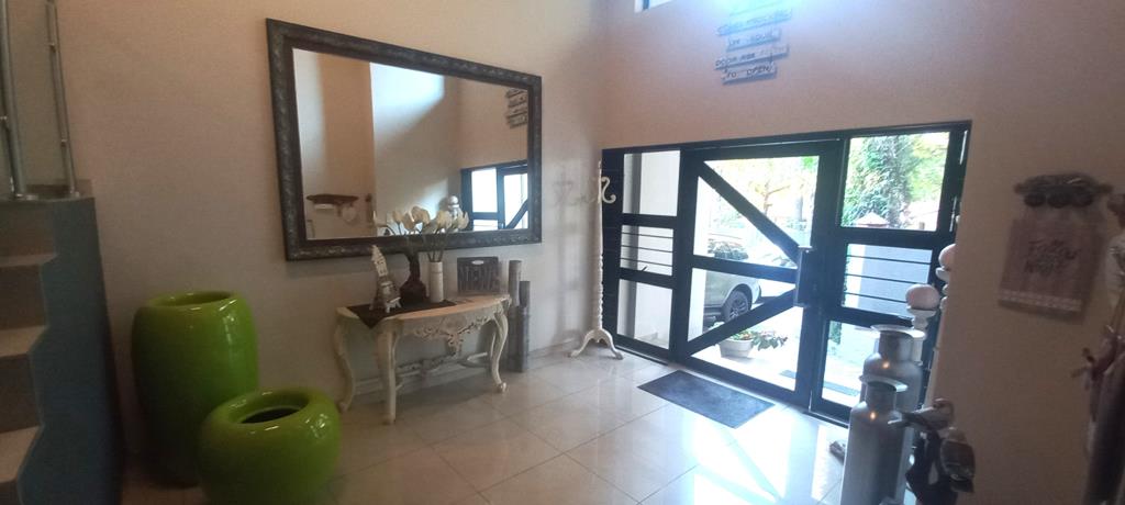 The home consists of 2 levels. On the upper level you have a spacious open area with a tea/coffee station that can be used as a pyjama lounge, gym or whatever your personals need may be. The main bedroom has a full bathroom with bath and separate shower as well as a walk in closet - it also has sliding doors that open onto a covered balcony. Two bedrooms share a bathroom. The 4th bedroom is currently a study and opens up onto the balcony as well.