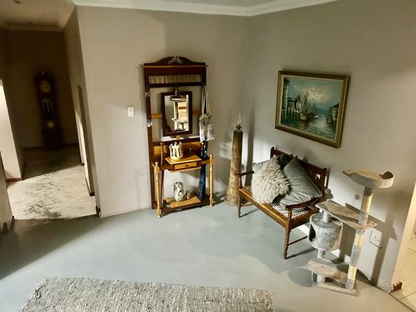The entertainment area with warm pool, braai and bar are covered with glass folding doors.
