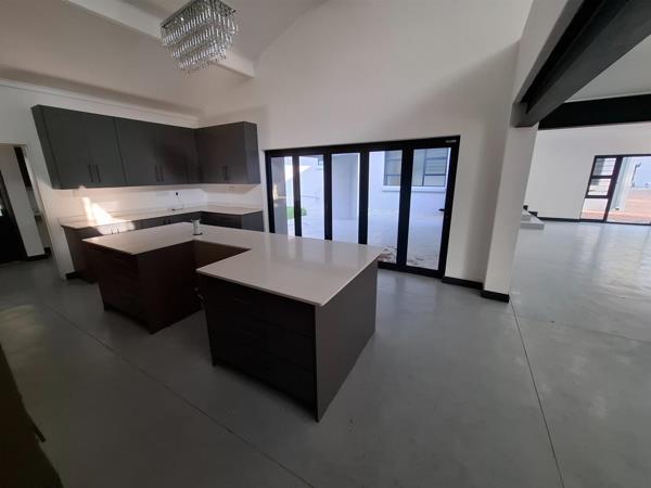 The kitchen is a modern masterpiece, finished in chic grey tones with Caesarstone countertops, a gas oven, and a centre island perfect for family gatherings. A combined scullery and laundry add practicality, while a stylish guest cloakroom is tucked away downstairs. With aluminium windows and doors throughout, durability and elegance are guaranteed.