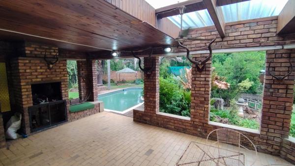 Enjoy outdoor living at its best with a beautifully landscaped garden, sparkling swimming pool, greenhouse, and entertainment area featuring a built-in braai and bar roomperfect for hosting family and friends.