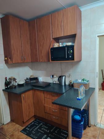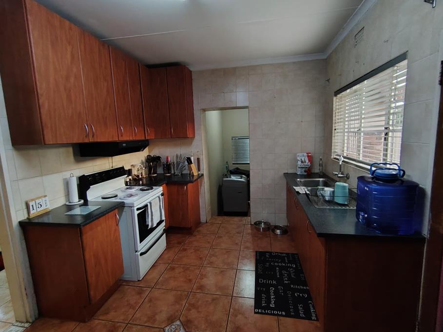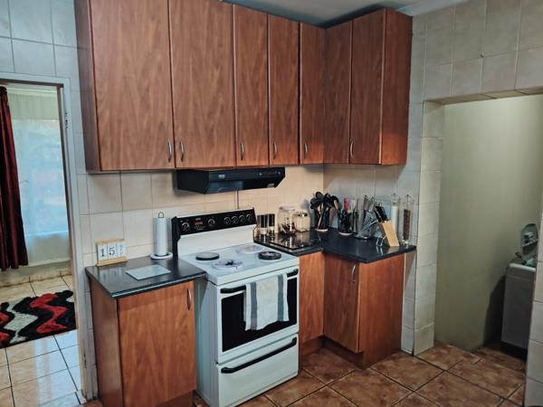 Lots of built-in cupboards in the kitchen with scullery, place for fridge and dishwasher.