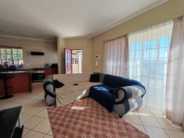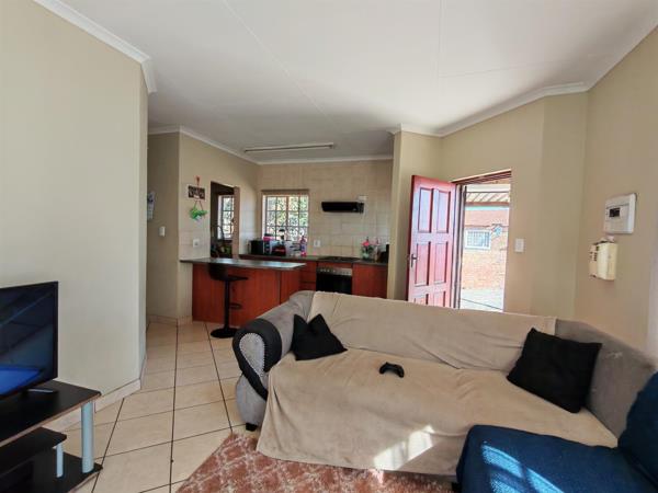 Upon entering the home, you are welcomed by a sunny open plan family room. The kitchen is laid out practically and has a breakfast nook where your family can gather for meals. The kitchen has plenty of cupboards, counter tops and an electric stove with hob and extractor fan. There is a practical seperate scullery and laundry area.