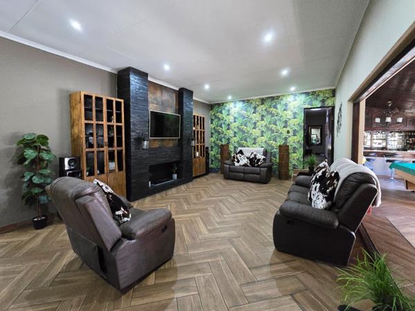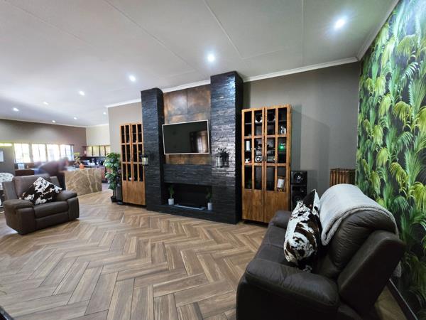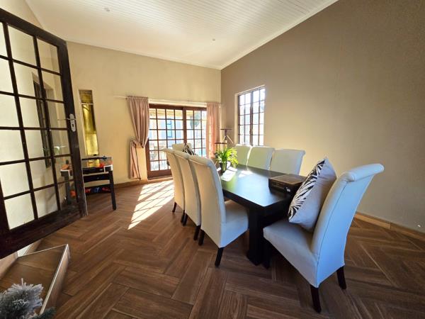 Outdoor living is equally impressive with a large lapa complete with a built-in braai, ideal for alfresco dining. The stunning swimming pool and jacuzzi offer relaxation and leisure opportunities amidst the beautifully landscaped garden. With modern finishes throughout, this home exudes elegance and sophistication. The property also includes a double garage and four carports, ensuring ample parking space for residents and guests alike. This home truly encapsulates luxury living with its thoughtful design and premium amenities.