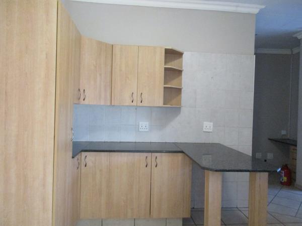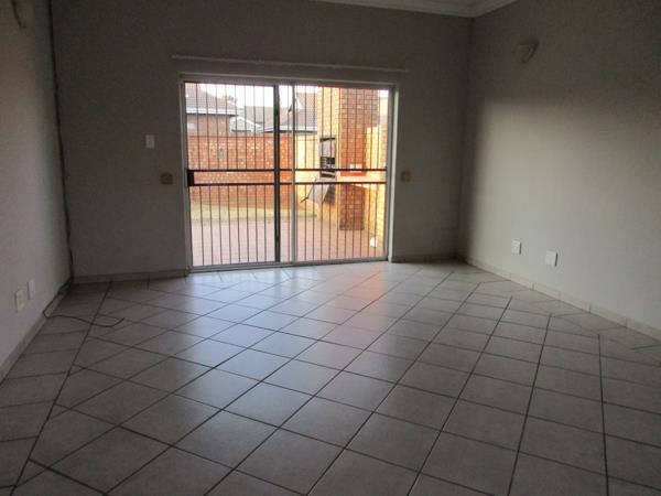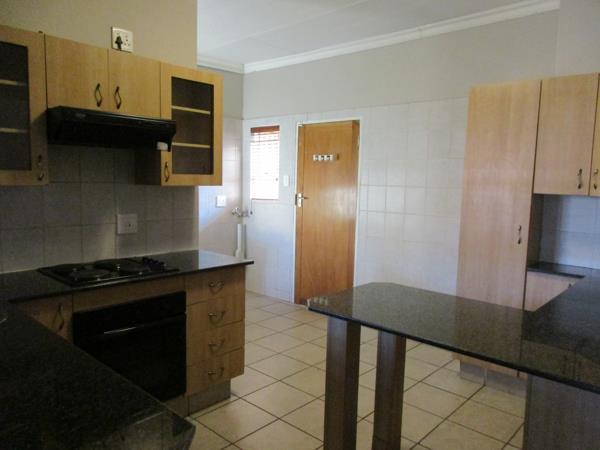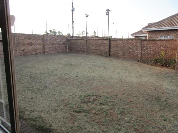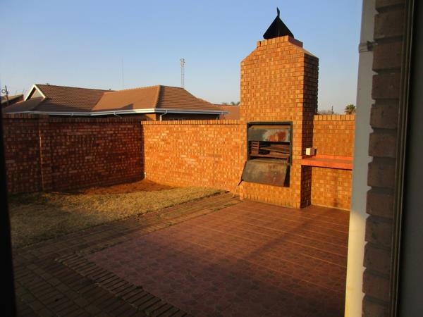 Simplex townhouse A place to be yourself. Open plan Dining Living Area opening with sliding doors on to a paved Braai area and a spacious garden. Kitchen with cupboards and granite finish, under counter stove, separate scullerylaundry and extra washing basin outside on back stoep. Large build-in cupboard in passage, Guest cloak room, En-suite Main bedroom with large build-in cupboard, 2 bedrooms with build-in cupboards and a family bathroom. Double Garage, and a large garden. Burglar bars and safety doors. Save for the kids to play. Brick surrounding walls with security fence and remote controlled Entrance gate. NO PETRS ALLOWED. .This is Space. Call me to view this once in a life time bargain. They do not come around in this size any more. Townhouse for sale in Gholfsig, Middelburg Mpumalanga