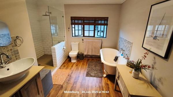 The dining room is perfect for intimate family meals or larger gatherings. From here, you can move effortlessly to the cozy lounge, where soft furnishings and a welcoming atmosphere invite you to relax and unwind. The lounge opens up to a stunning covered patio and build in braai area and outdoor space, where a heated pool beckons for a refreshing dip or a moment of tranquility as you float beneath the African sky.